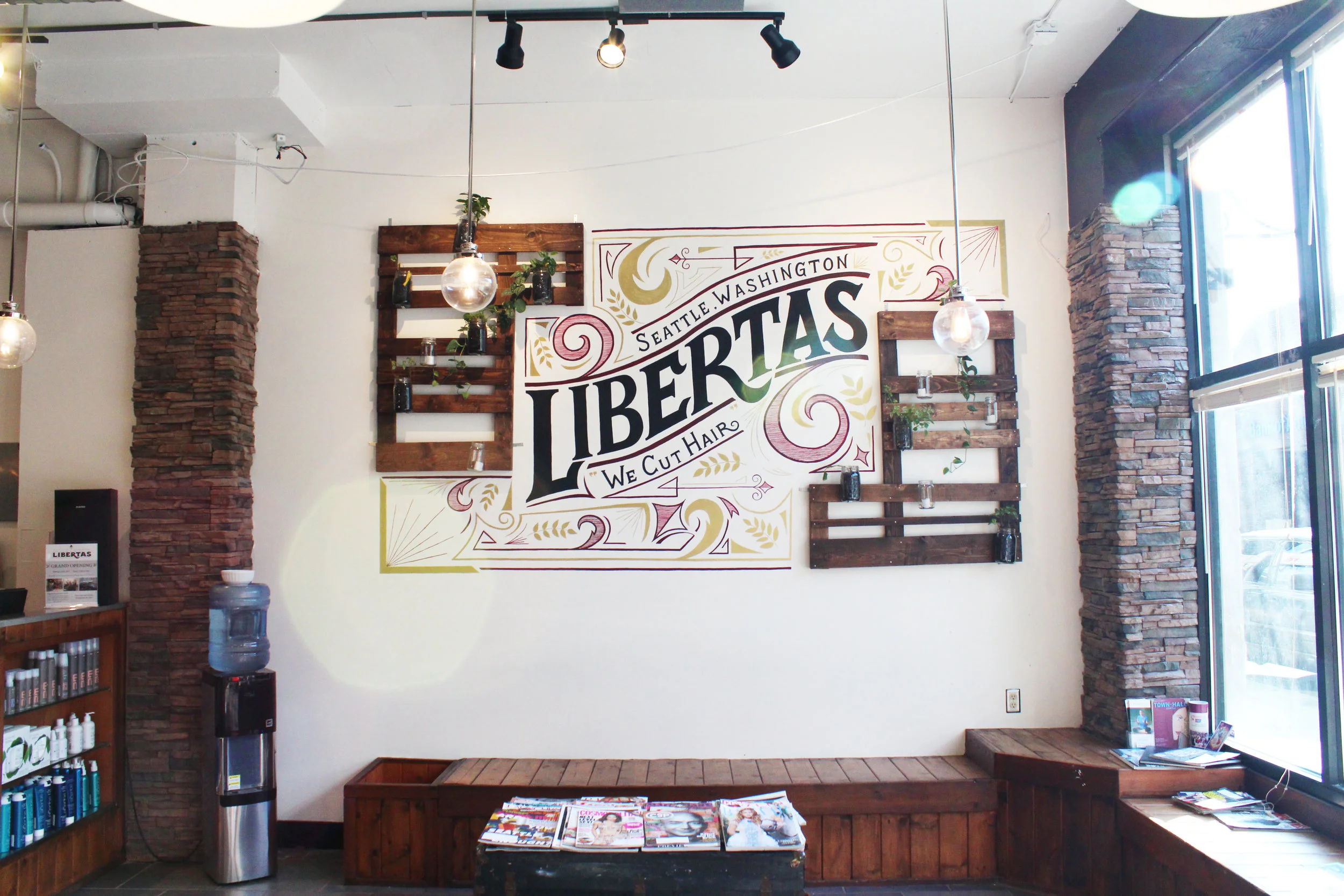 After creating the logomark for Libertas, they brought me back to paint a mural in their newly renovated space. They installed these beautiful home-made planters, which created a unique canvas for the mural. 80 hours in 8 days (sketch + paint).