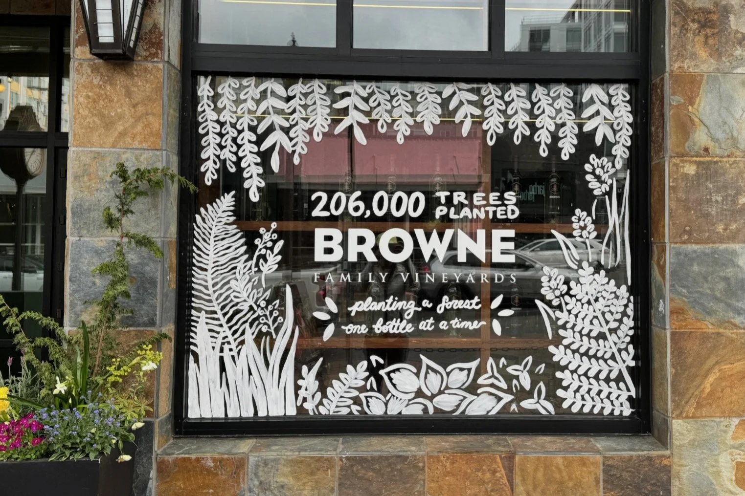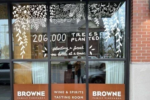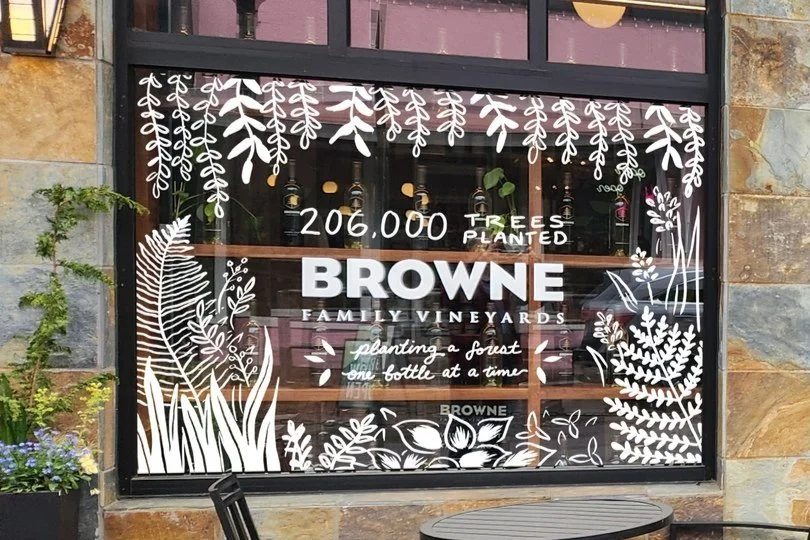 Earth Day Window Murals done for Browne Family Vineyards’ 3 tasting rooms.
