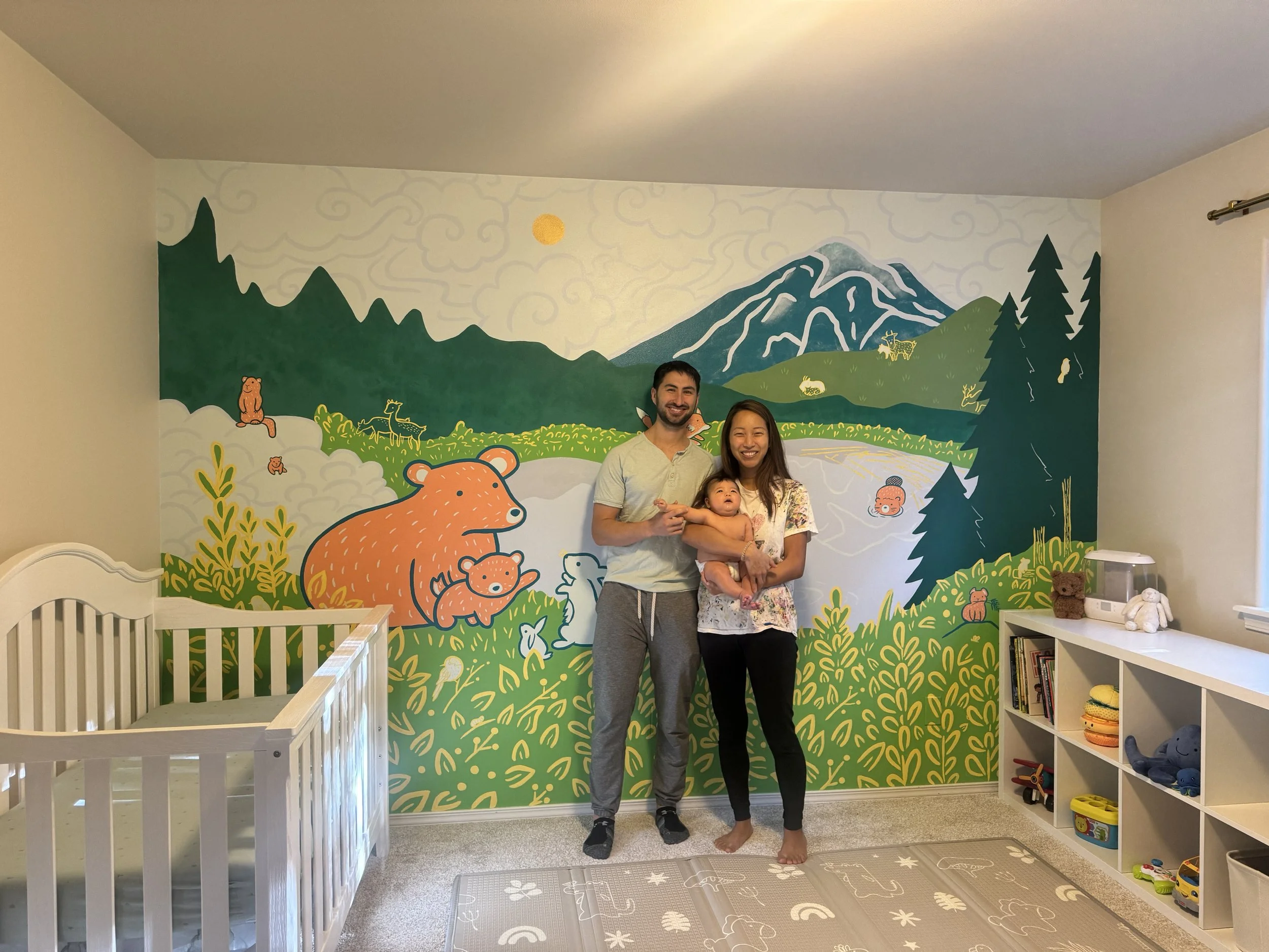 My clients asked for a non-traditional baby mural featuring a calming nature scene